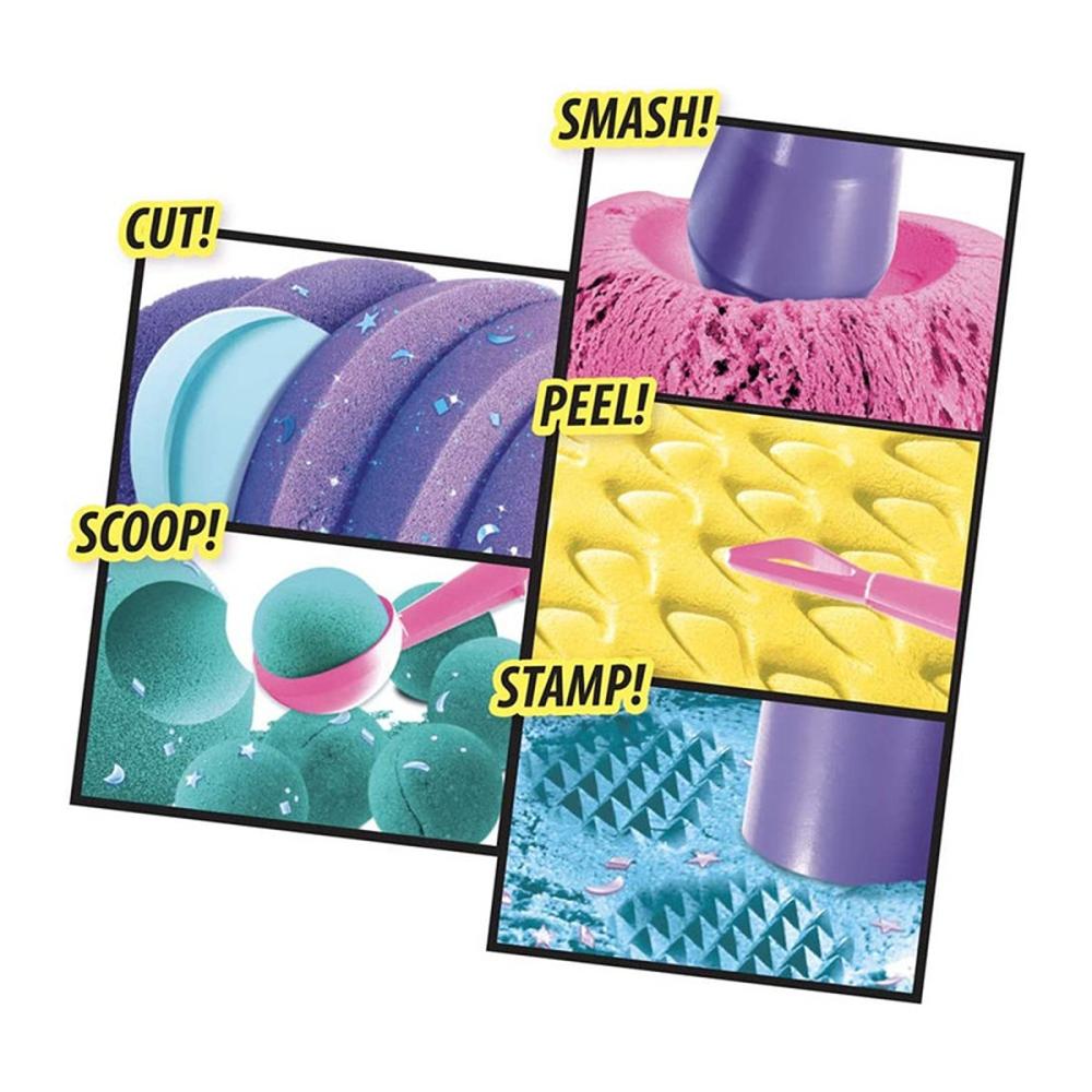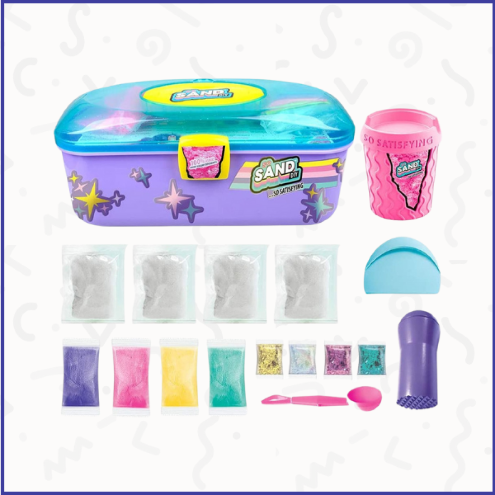 احصل على هذه الحقيبة المثيرة المليئة بالأدوات والرمال السحرية للاستمتاع بتجربة فريدة ومريحة. لون الرمل واستخدم الأدوات المختلفة للقطع وغير ذلك الكثير. استمتع بالأصوات و الملمس السحري.