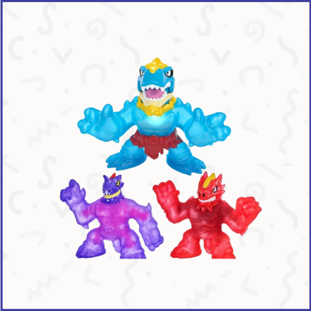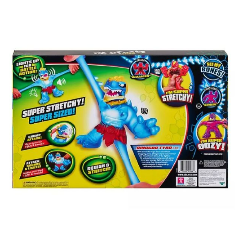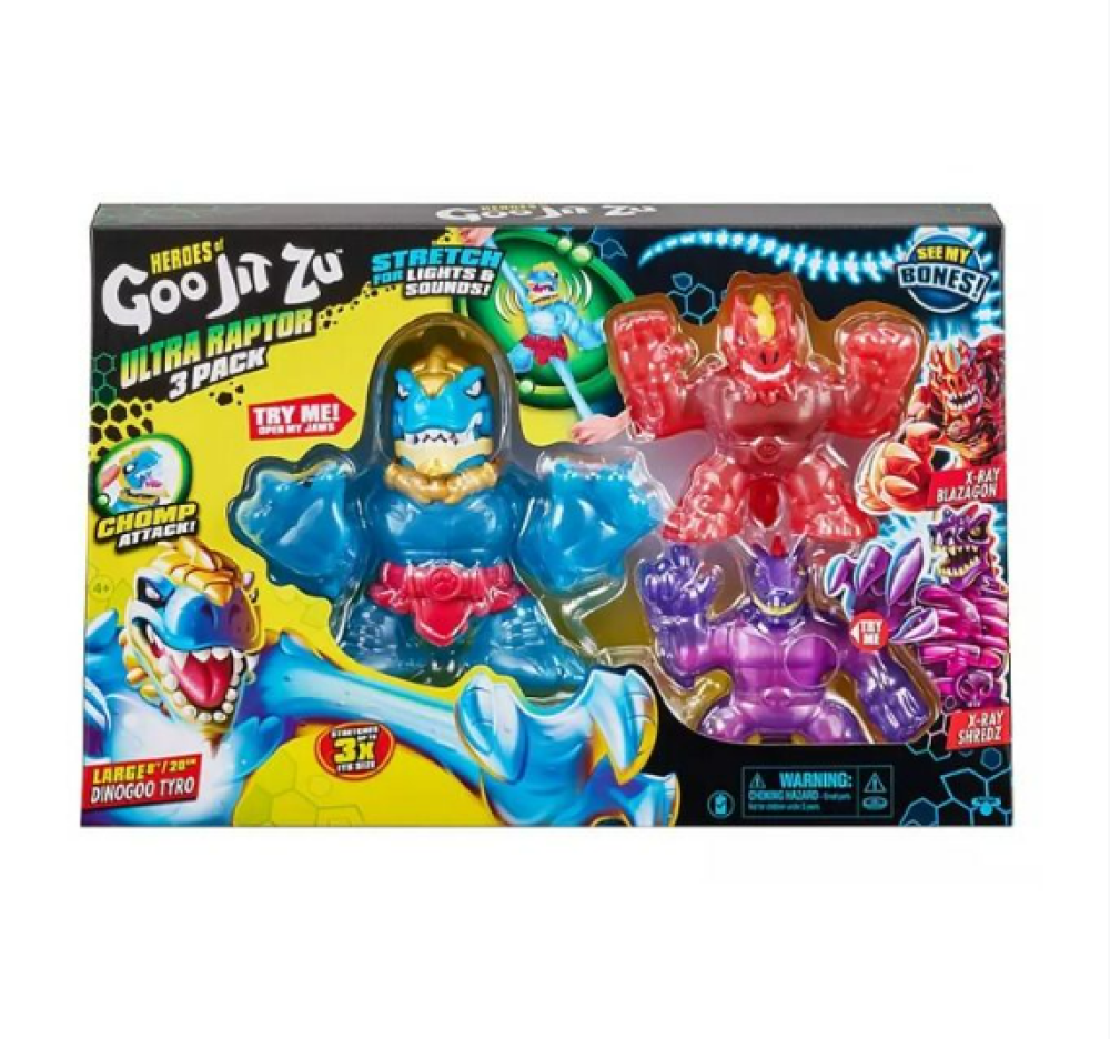 Includes three pre-historic Goo Jit Zu Heroes. Shredz, Blazagon and the super-sized Dinogoo Tyro.Age:+3years.