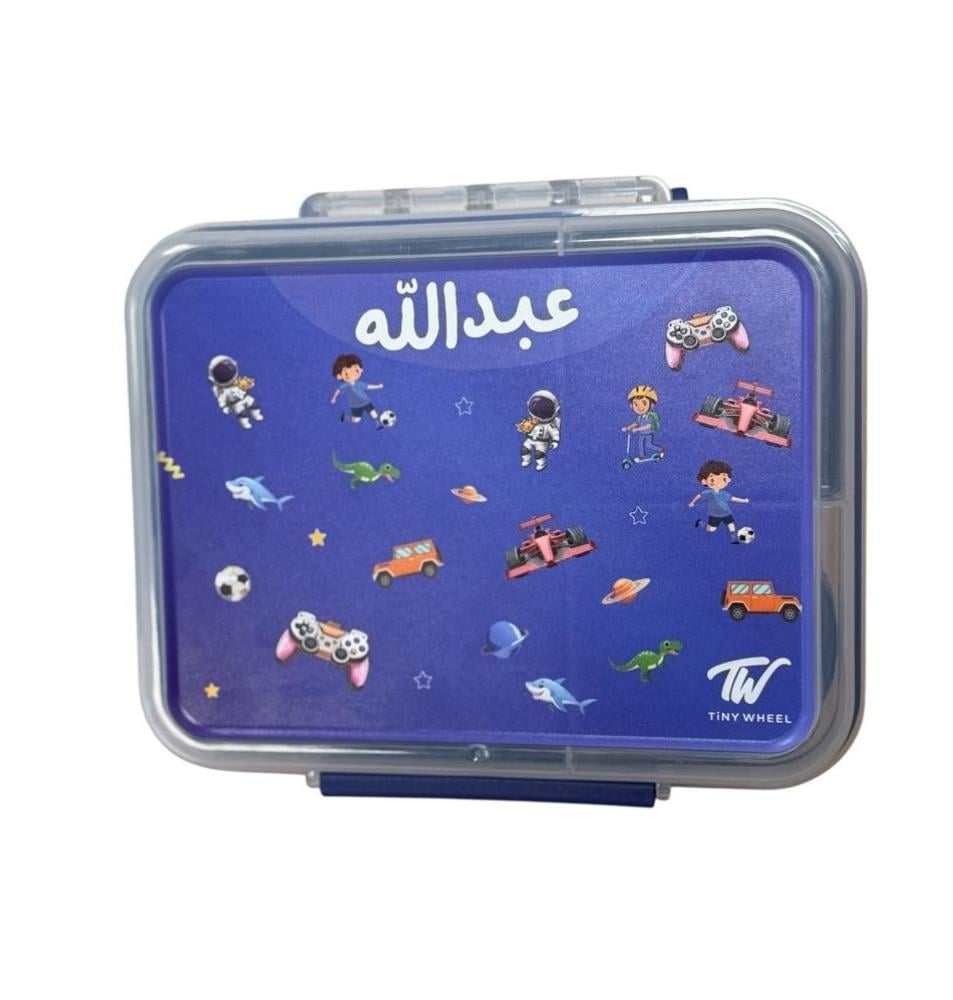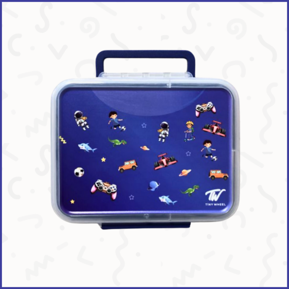 صندوق طعام مزدوج الطبقات - فضاء وسيارات أزرق